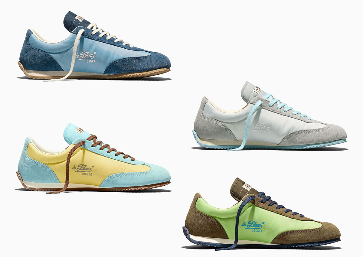 Materially, the build stays consistent across all four pairs. Suede covers the T-toe, lace panel, and heel, while canvas lands on the side panels and tongue, finished with le Fleur Jogger branding on the lateral side plus Converse logos on the tongue tag and insoles.